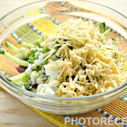 Автор статьи Денис Квасов АА Рецепты салатов с копченой колбасой и сыром предусматривают различные сорта: Российский, Голландский, Гауда, копченый, колбасный или рассольный. Для рецептов, в которых необходимо тереть продукт, используют твердые сорта, для овощных салатиков — рассольные.